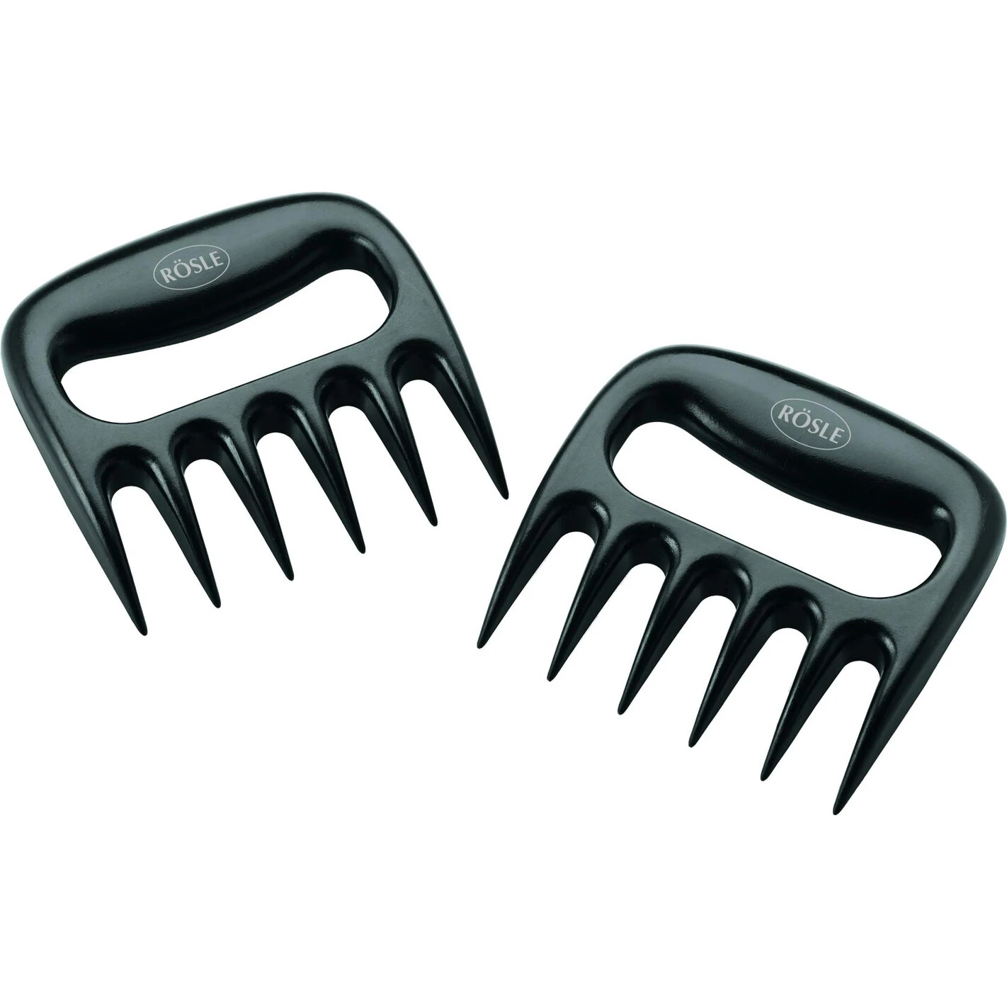 Les fourchettes à pulled pork en polycarbonate noir brillant sont utilisées pour effilocher de la viande.