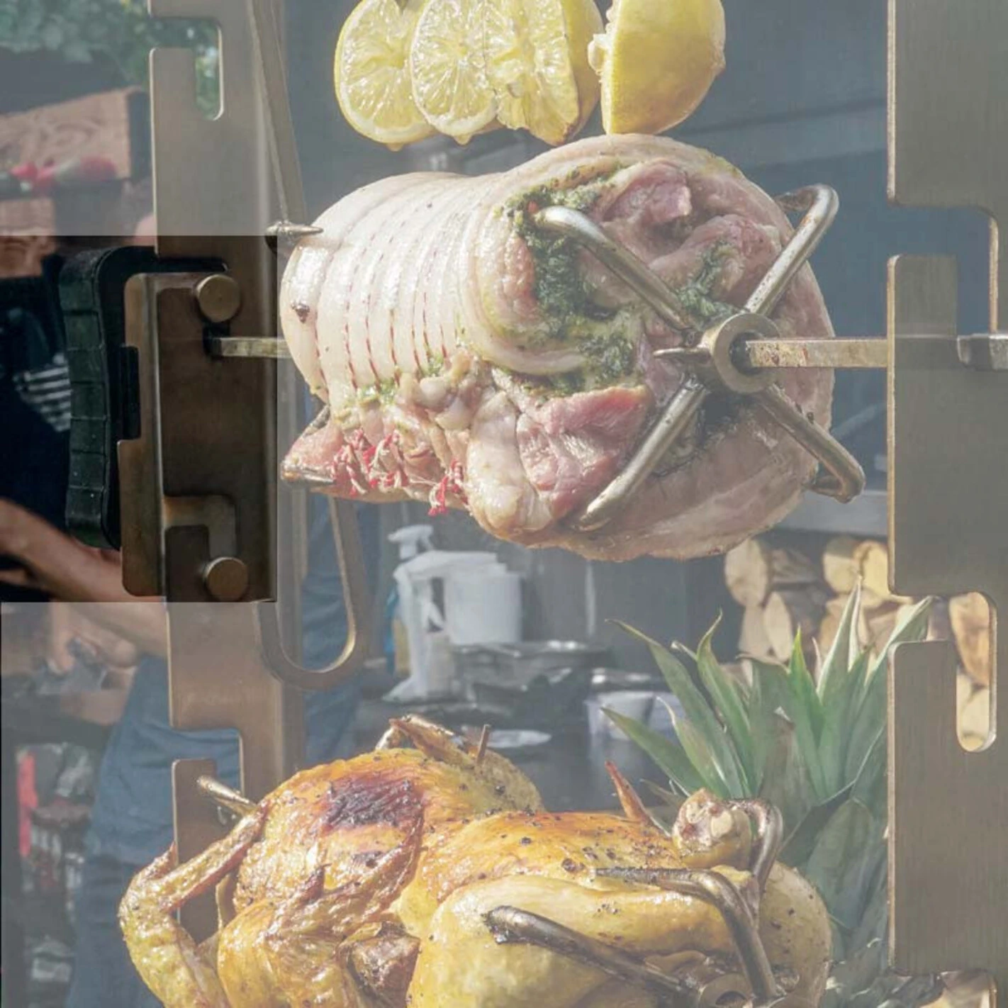 Amateurs de cuisine à la broche, laissez cuire votre poulet rôti , votre gigot mais aussi un poisson ou des légumes en toute autonomie grâce au moteur à piles compatible sur l’ensemble de rôtisserie Ofyr.